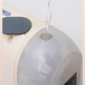 1. املأ الخزان بالماء باستخدام كوب القياس المرفق