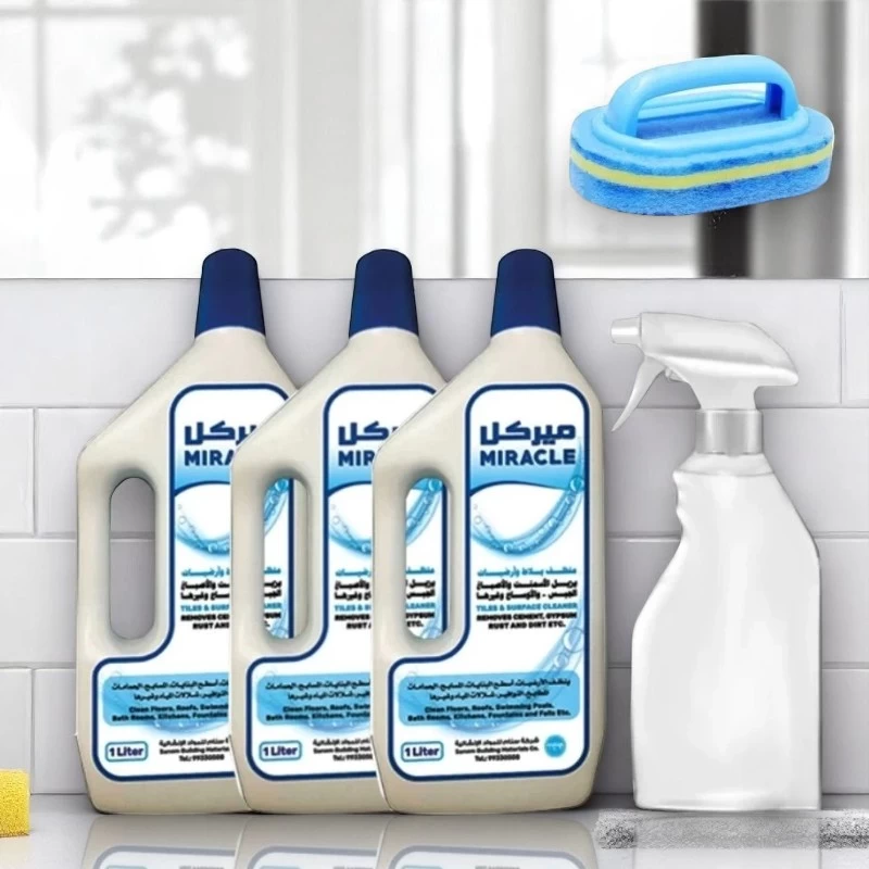 🧼 منظف ميركل للسيراميك والأسطح – 3 عبوات × 1 لتر + بخاخ + إسفنجة تنظيف