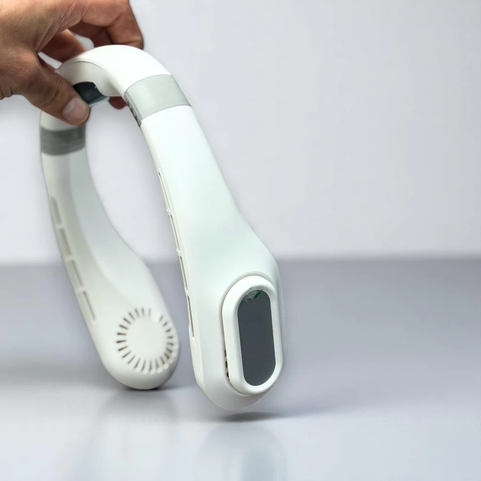 ❄️ مروحة تبريد محمولة حول الرقبة J18 – بدون شفرات مع شاشة رقمية (أبيض)