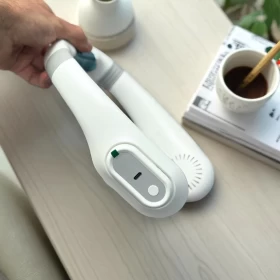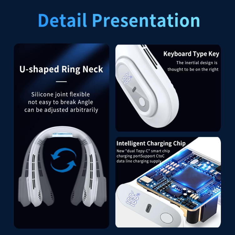 ابقَ منتعشًا في أي مكان بدون استخدام اليدين! مروحة J18 حول الرقبة تأتي بتصميم أنيق وآمن بدون شفرات، مزودة بشاشة رقمية وتشغيل هادئ – مثالية للصيف والسفر والرياضة.