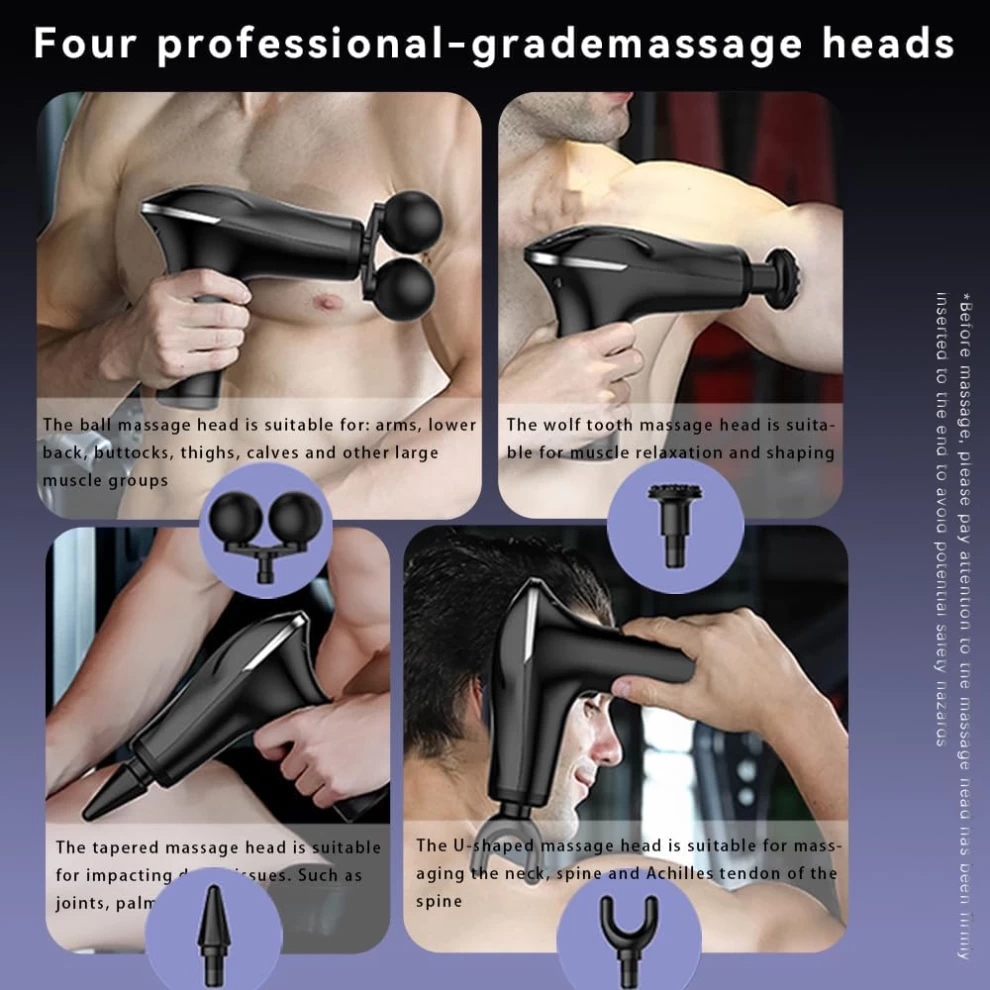 💪 مسدس مساج – هادئ جدًا بعمق 40 ديسيبل لتدليك الأنسجة العميقة (أسود)