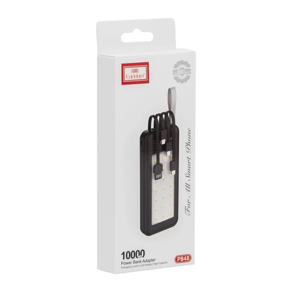 باور بانك Earldom ET-PB48 – سعة 10000 مللي أمبير | كيابل مدمجة ×3 | أسود