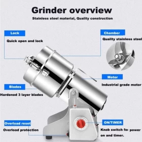 مثالي لطحن التوابل، الحبوب، القهوة، والأعشاب الجافة في ثوانٍ! يتميز هذا الخلاط الكهربائي بقوة 2000 واط وسعة 650 غرام مع تصميم متين من الستانلس ستيل، مما يجعله أداة أساسية للمطابخ المنزلية، المقاهي، ومحلات الأعشاب.