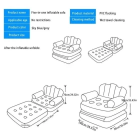 استمتع بالراحة وسهولة الحمل مع هذه الأريكة القابلة للنفخ، مزودة بمساند ومضخة هواء. مثالية للاستخدام الداخلي أو الرحلات الخارجية.