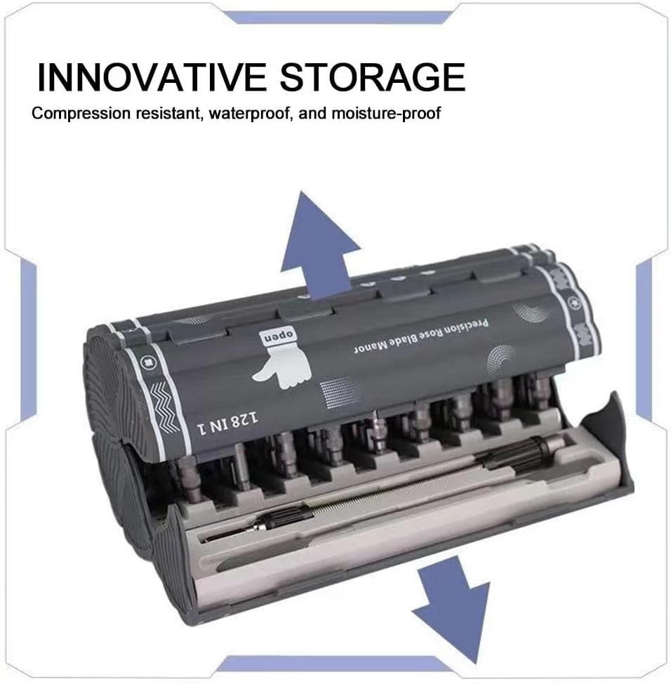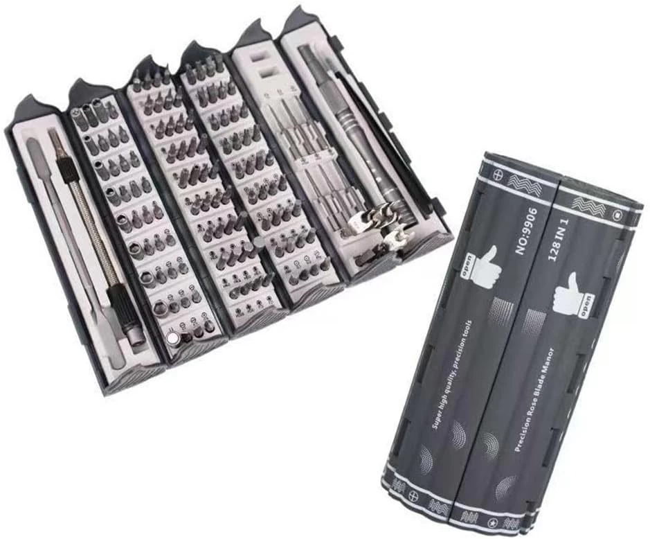 أنجز أعمال الصيانة الدقيقة بسهولة مع طقم المفكات الاحترافي هذا. يحتوي على 128 قطعة متنوعة مثالية لتصليح اللابتوبات، الهواتف، الساعات، النظارات، الأجهزة الصغيرة، وغيرها.