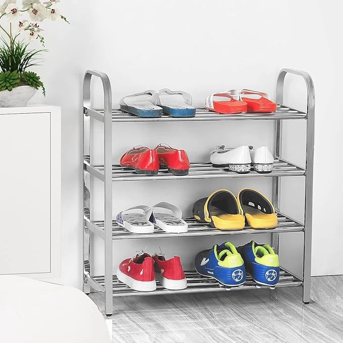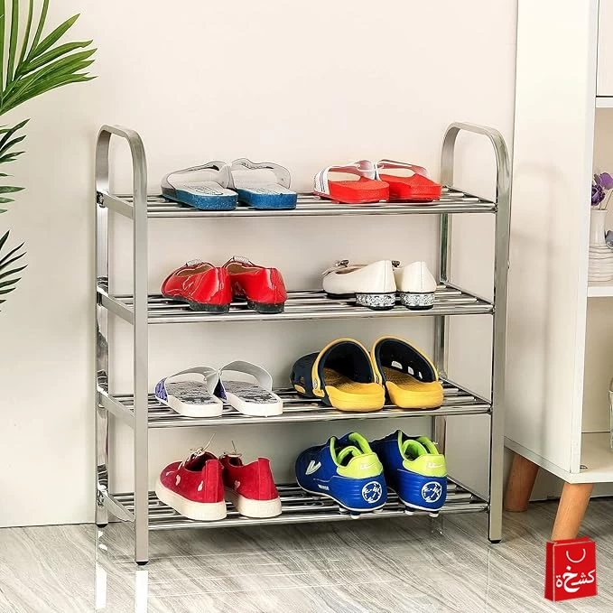 👟 رف أحذية من الستانلس ستيل بـ 4 طبقات – مقاوم للصدأ ومنظم عملي