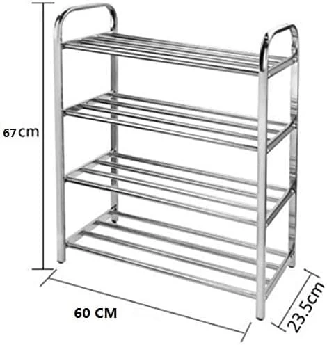 رف أحذية من الستانلس ستيل بـ 4 طبقات – مقاوم للصدأ ومنظم عملي 67 سم