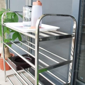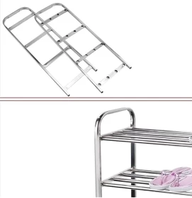 نظّم أحذيتك بسهولة مع هذا الرف العملي المصنوع من الستانلس ستيل المقاوم للصدأ. مثالي للمداخل، غرف النوم، الخزائن، أو غرف الغسيل.