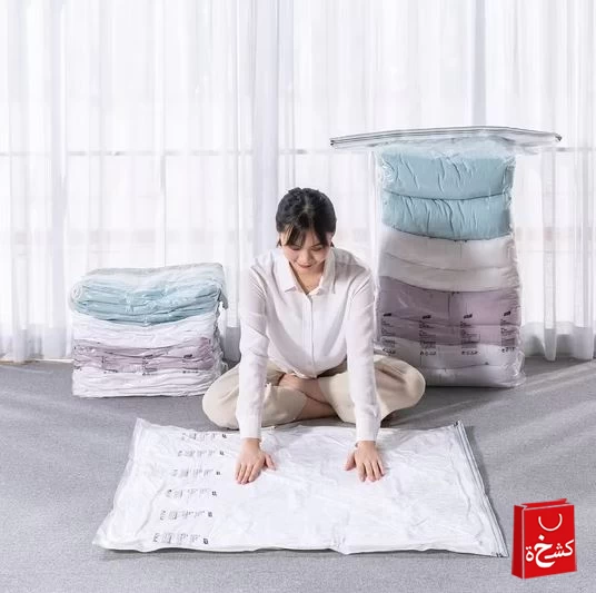 وفر المساحة بنسبة تصل إلى 80% مع أكياس التخزين المفرغة من الهواء، المثالية للبطانيات، الملابس الشتوية، والمفارش. (المضخة غير مرفقة)