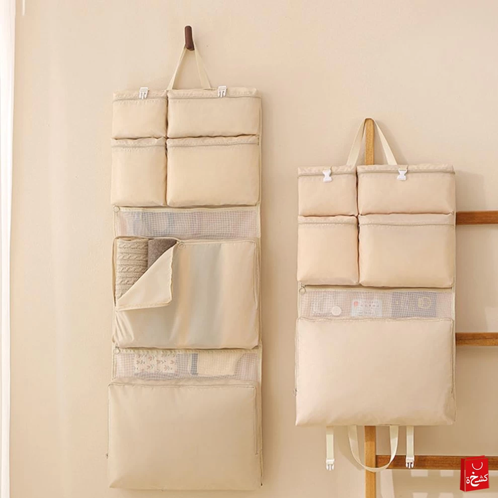 • الأقسام: 3 رفوف + جيب سفلي بسحاب + خطاف علوي