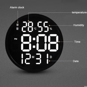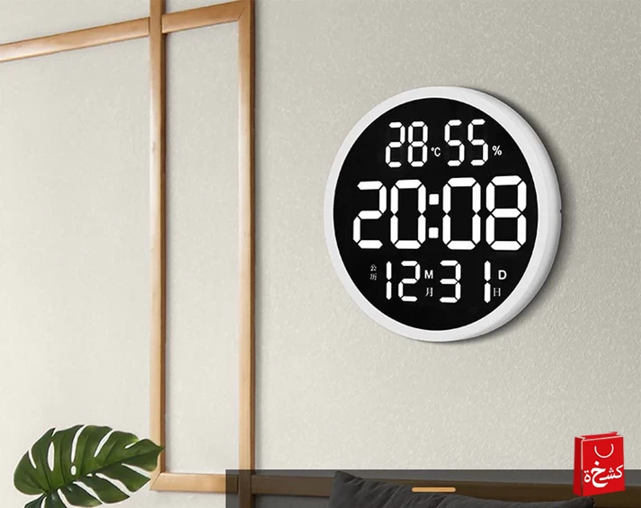 ارتقِ بمظهر منزلك أو مكتبك مع ساعة الحائط الرقمية LED 6620 ذات التصميم العصري وشاشة كبيرة مقاس 12 بوصة. تعرض الساعة الوقت، التاريخ، درجة الحرارة، ونسبة الرطوبة بوضوح تام، مما يجعلها مثالية للمنازل، المكاتب، المدارس، المحلات، والعيادات.