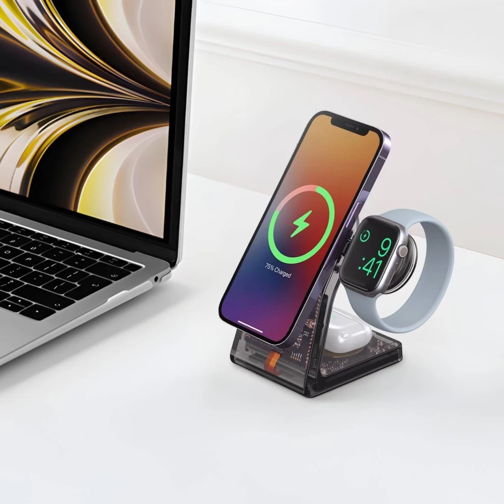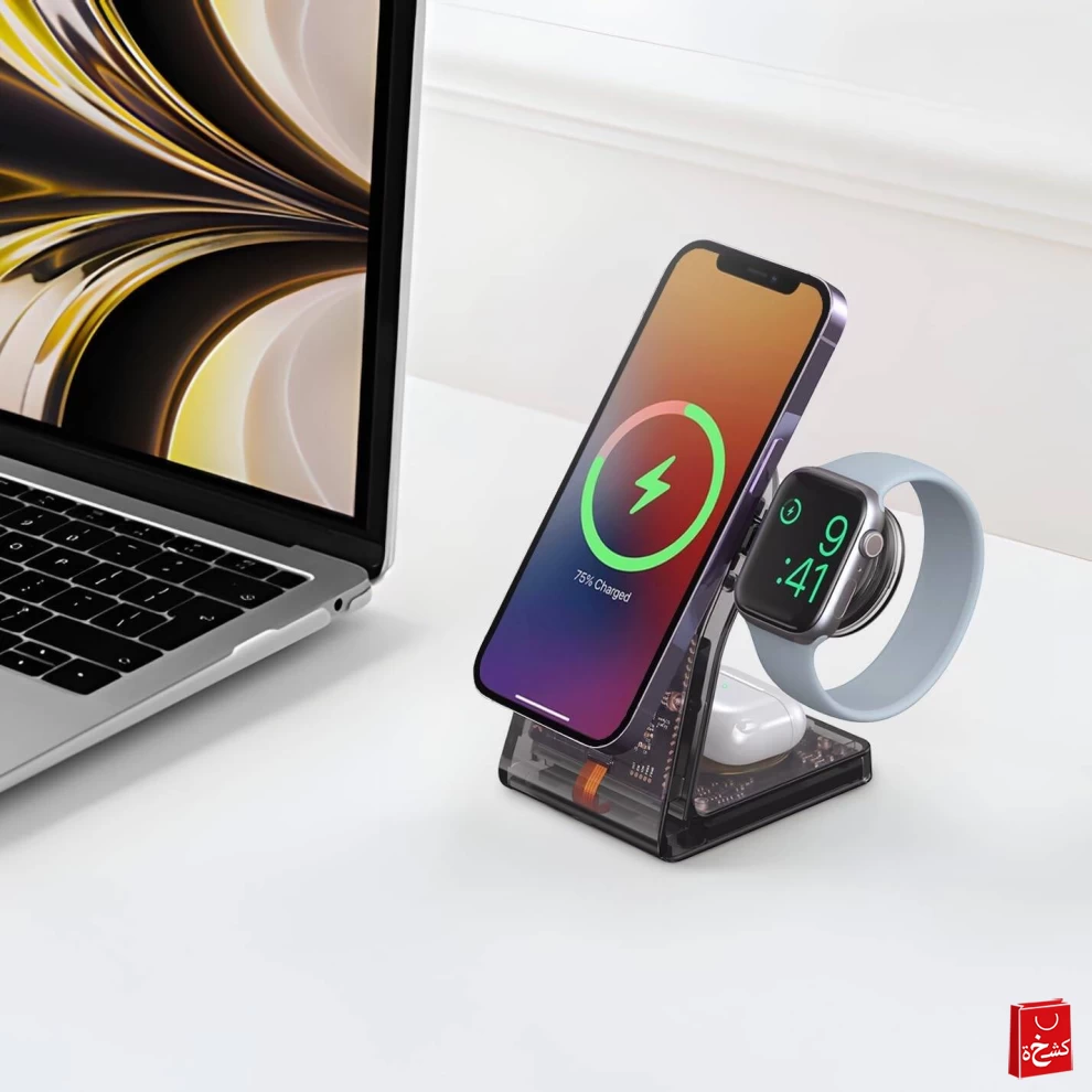 اشحن أجهزتك بأناقة مع قاعدة الشحن اللاسلكية من بورودو بتصميم شفاف. بفضل مظهرها العصري وتقنية الشحن السريع، تمنحك هذه القاعدة تجربة شحن عملية وآمنة مع تصميم مميز يضيف لمسة جمالية لمكتبك أو غرفتك.