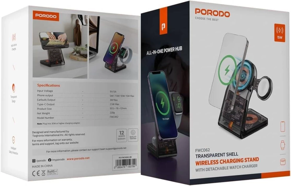 • 🔋 1 × قاعدة شحن لاسلكية بورودو بتصميم شفاف
