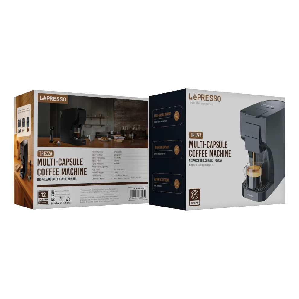 استمتع بأفضل تجربة قهوة في المنزل أو المكتب مع ماكينة ليبريسو متعددة الكبسولات. صممت لتحضير الإسبريسو، لونغو، أو قهوتك المفضلة باستخدام كبسولات Nespresso®، البن المطحون أو الكبسولات، لتجمع بين الراحة، الأناقة، وجودة المقاهي في جهاز واحد.