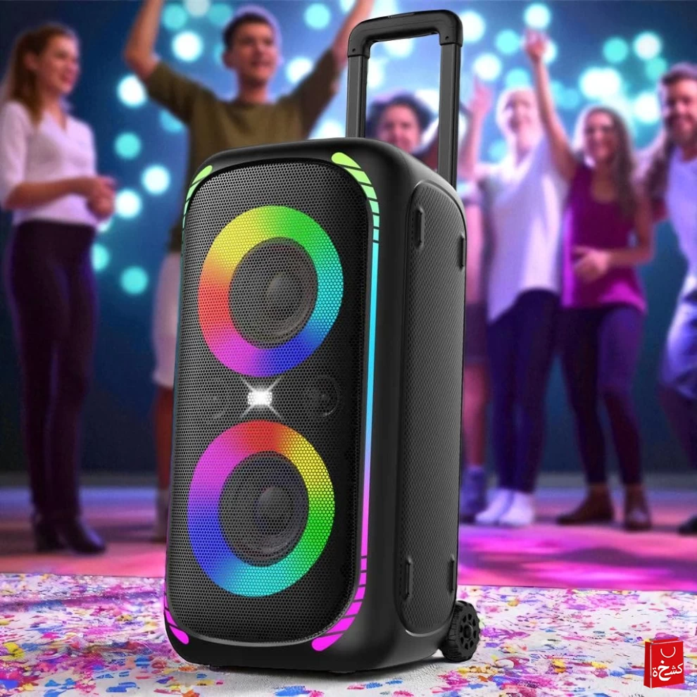🔌 النوع: مكبر صوت للحفلات مع عجلة نقل