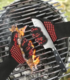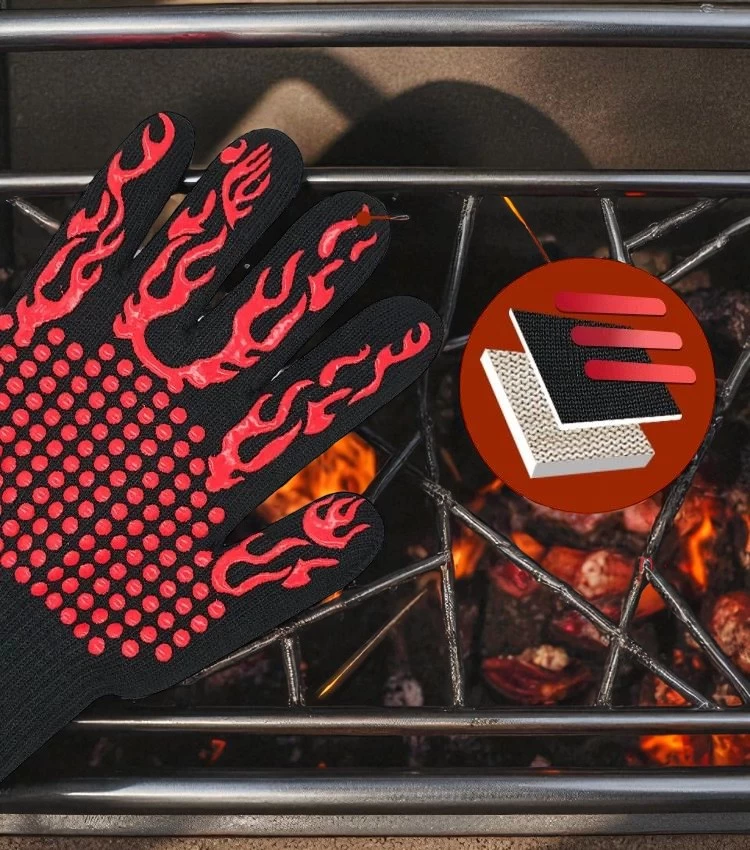واجه حرارة الشواء بثقة مع قفازات الشواء المقاومة للحرارة حتى 1472°F (800°C). مصنوعة من ألياف الأراميد عالية الجودة المستخدمة في ملابس الإطفاء، توفر حماية قصوى وراحة أثناء الطهي أو الخبز أو الشواء. بفضل القبضة السيليكونية المقاومة للانزلاق، يمكنك التحكم في أدواتك بسهولة وأمان.
