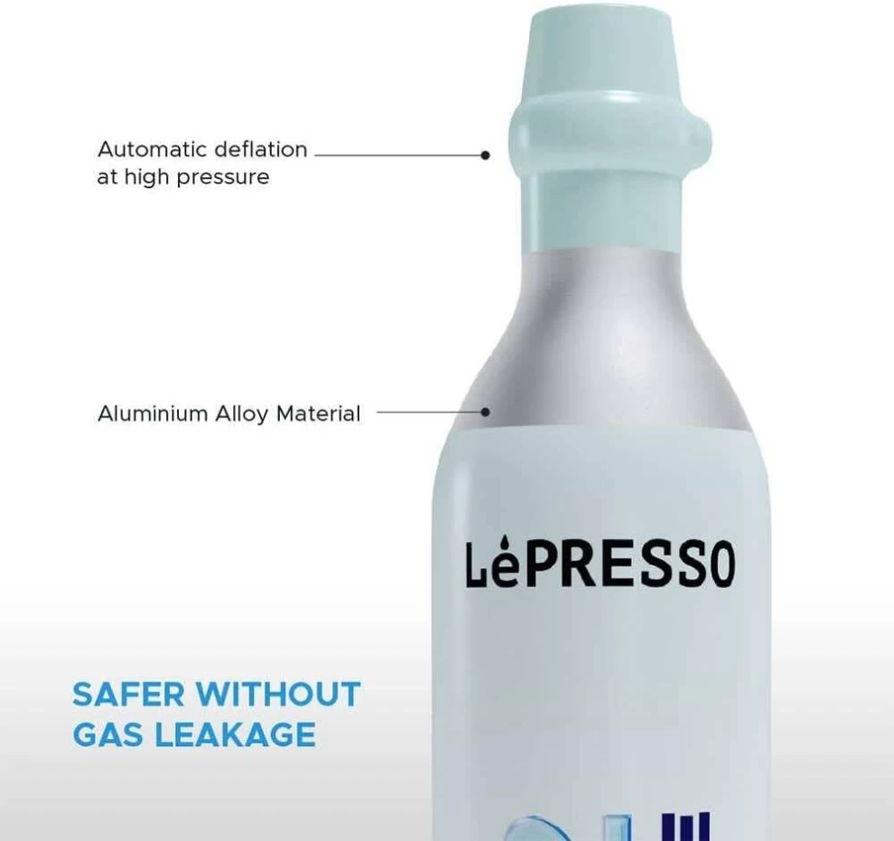 استمتع بمشروبات فوّارة ومنعشة في أي وقت مع كبسولة ثاني أكسيد الكربون من ليبرسو – باللون الفضي. تم تصميمها بجودة عالية لتوفير كربنة مثالية لمياهك الغازية والمشروبات الفوّارة. بفضل تصميمها الألمنيومي الأنيق، توفر أداءً آمنًا ومستقرًا في كل استخدام.