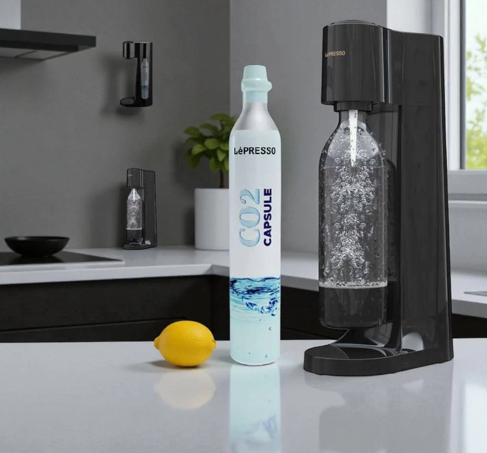 1️⃣ قم بتثبيت الكبسولة في جهاز صانع المياه الغازية من ليبرسو.
