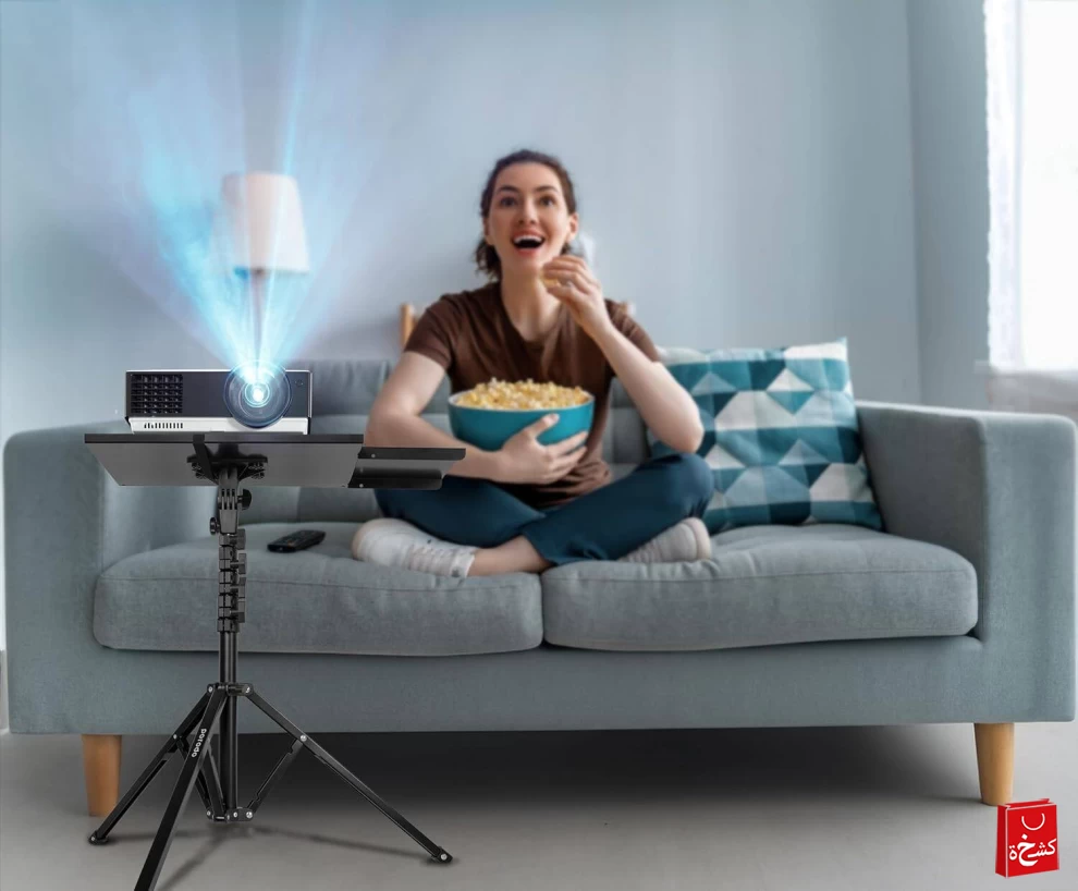 2️⃣ ضع اللابتوب أو البروجيكتور على الصينية.