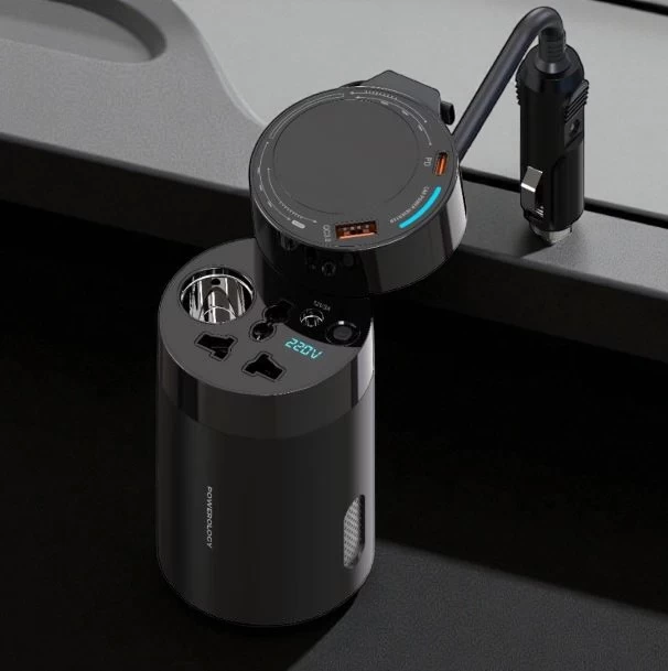 حوّل سيارتك إلى محطة طاقة متنقلة مع محول الطاقة الشامل للسيارة من باورولوجي بقدرة 200 واط. مصمم للسفر والاستخدام اليومي، يقوم بتحويل طاقة السيارة 12 فولت DC إلى 220 فولت AC لتشغيل الأجهزة الإلكترونية مثل اللابتوب، الهاتف، أو الأجهزة الصغيرة أثناء التنقل.