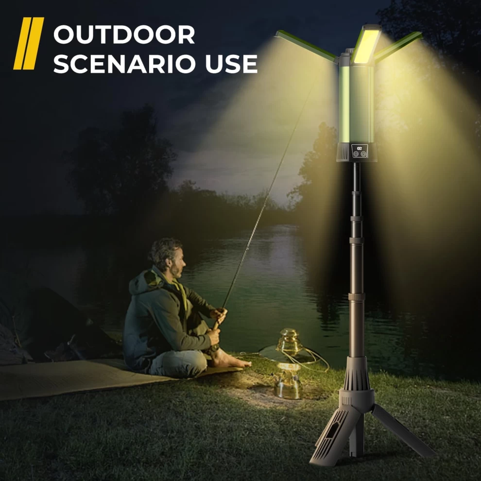 تمتع بإضاءة قوية ومرنة في أي مكان مع مصباح التخييم القابل للشحن. يتميز بتصميم قابل للتمديد وقاعدة تلسكوبية قابلة للضبط، ويعمل بالبطارية القابلة لإعادة الشحن لتوفير إضاءة قوية في رحلات التخييم، الصيد الليلي، أو في حالات الطوارئ.
