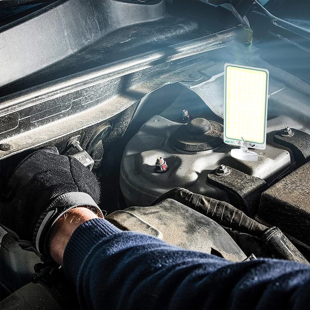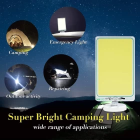 احصل على الإضاءة التي تحتاجها في أي مكان مع مصباح التخييم COB LED المزود بقاعدة مغناطيسية قوية للتثبيت على غطاء السيارة، السطح أو أي سطح معدني. مثالي لـ التخييم، الصيد، إصلاح السيارات، الطوارئ، والحديقة. تصميمه قابل للدوران 360° مع عدة أوضاع للإنارة.