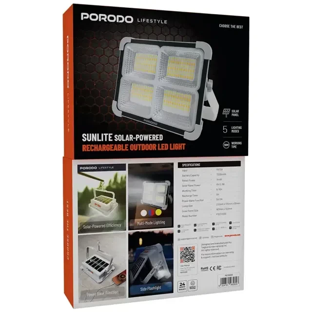 أضئ مساحاتك الخارجية بكفاءة مع إضاءة Sunlite الشمسية من Porodo Lifestyle، المصممة لتعمل بالطاقة الشمسية مع بطارية قابلة لإعادة الشحن، مما يجعلها مثالية للحدائق، التخييم، الشرفات، وحالات الطوارئ.