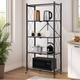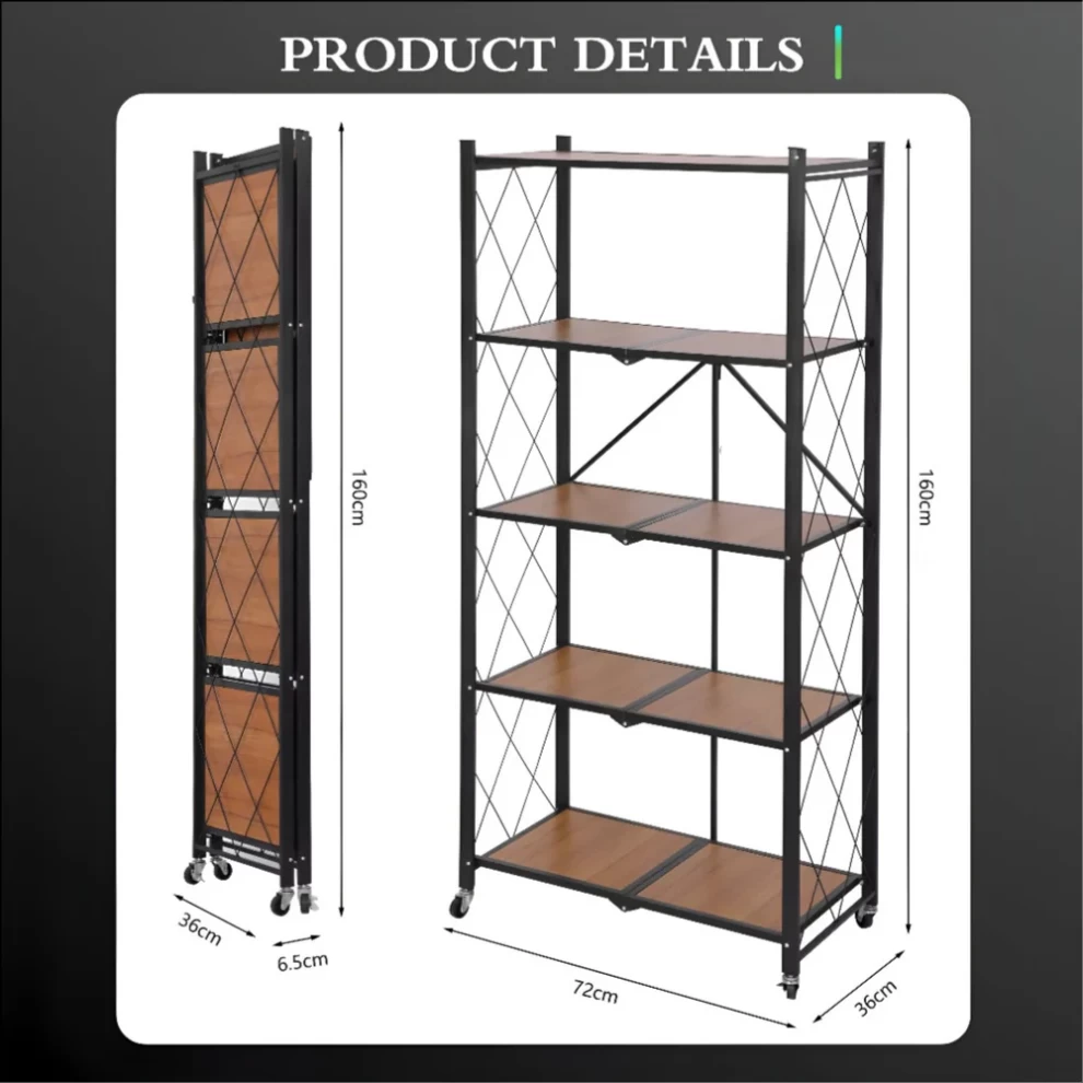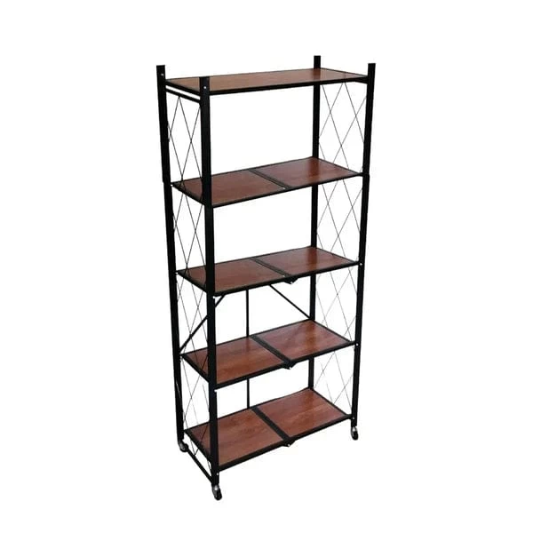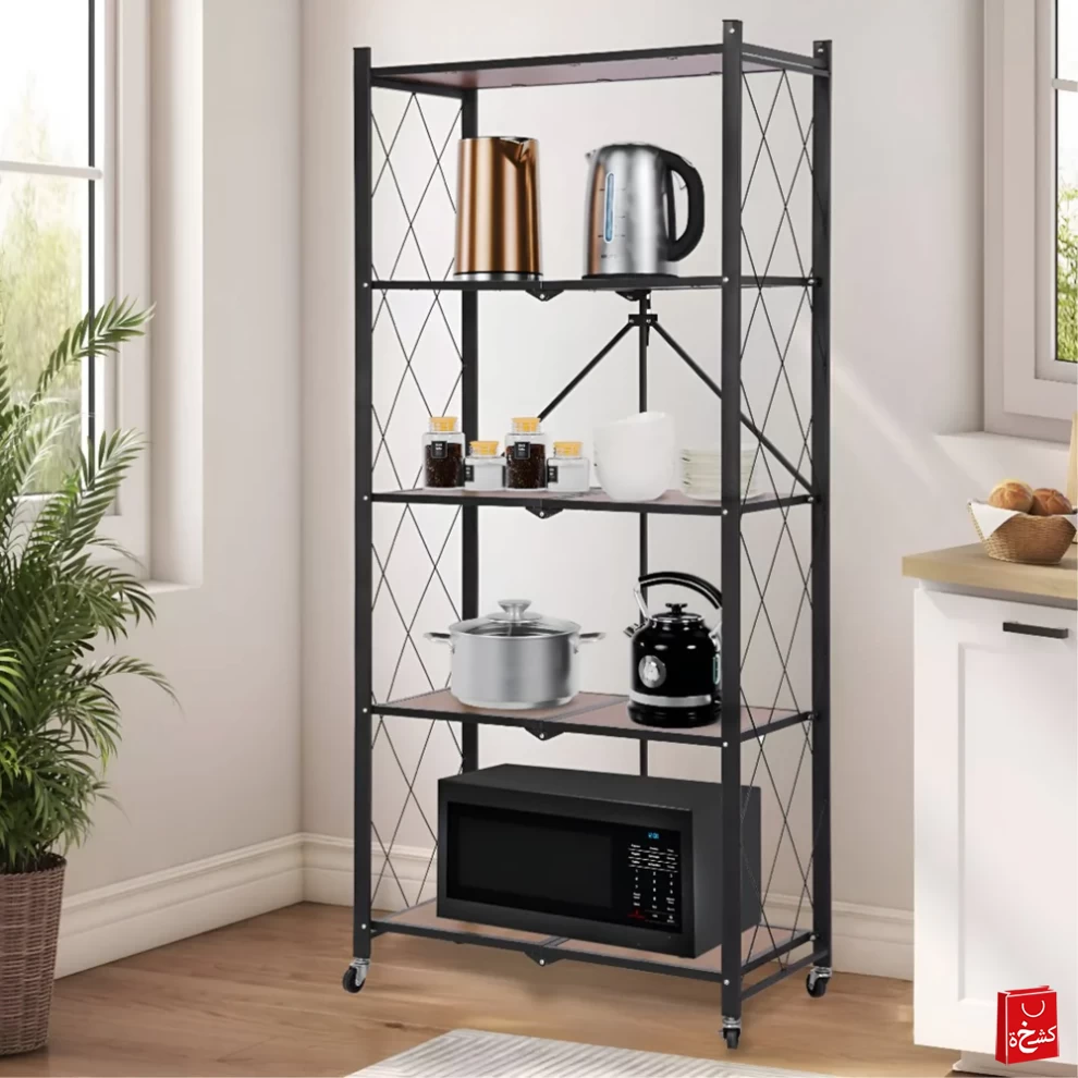 نظّم مساحتك بسهولة مع رف التخزين الخشبي القابل للطي بـ 5 طبقات، المصمم للاستخدام المنزلي والمكتبي. يوفر مساحة تخزين واسعة مع تصميم أنيق وقابل للطي لتوفير
