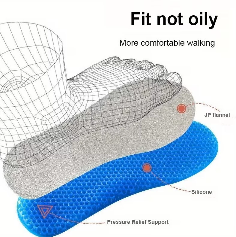 زد مستوى الراحة والأداء مع النعال الرياضية من الجل، المصممة لتوفير وسادة قابلة للتنفس وتمتص الرطوبة أثناء التمارين الرياضية والأنشطة اليومية. يقلل التصميم الهندسي من إرهاق القدم، يدعم الأقواس، ويوفر حماية ضد الصدمات أثناء الوقوف أو الحركة الطويلة.