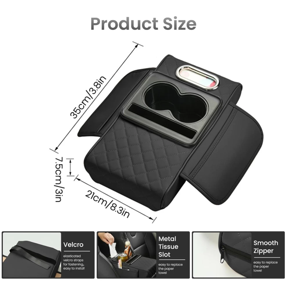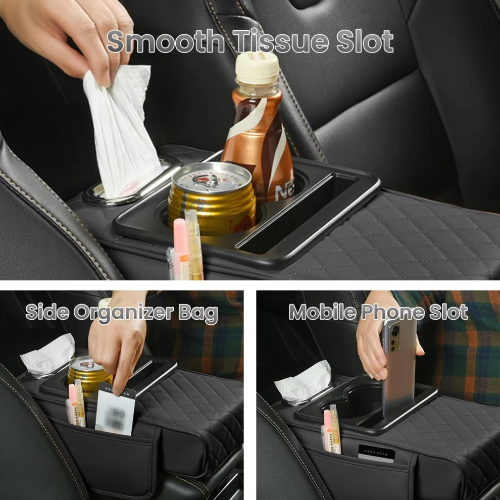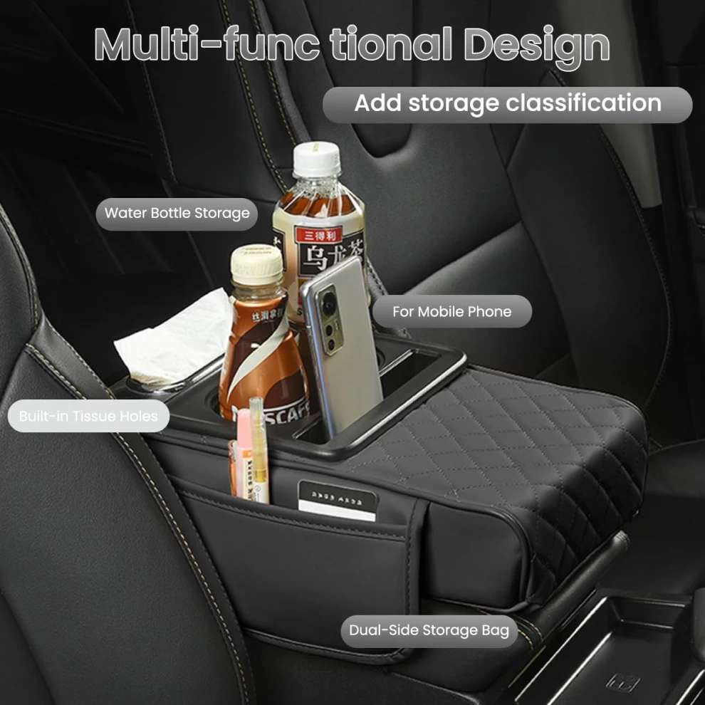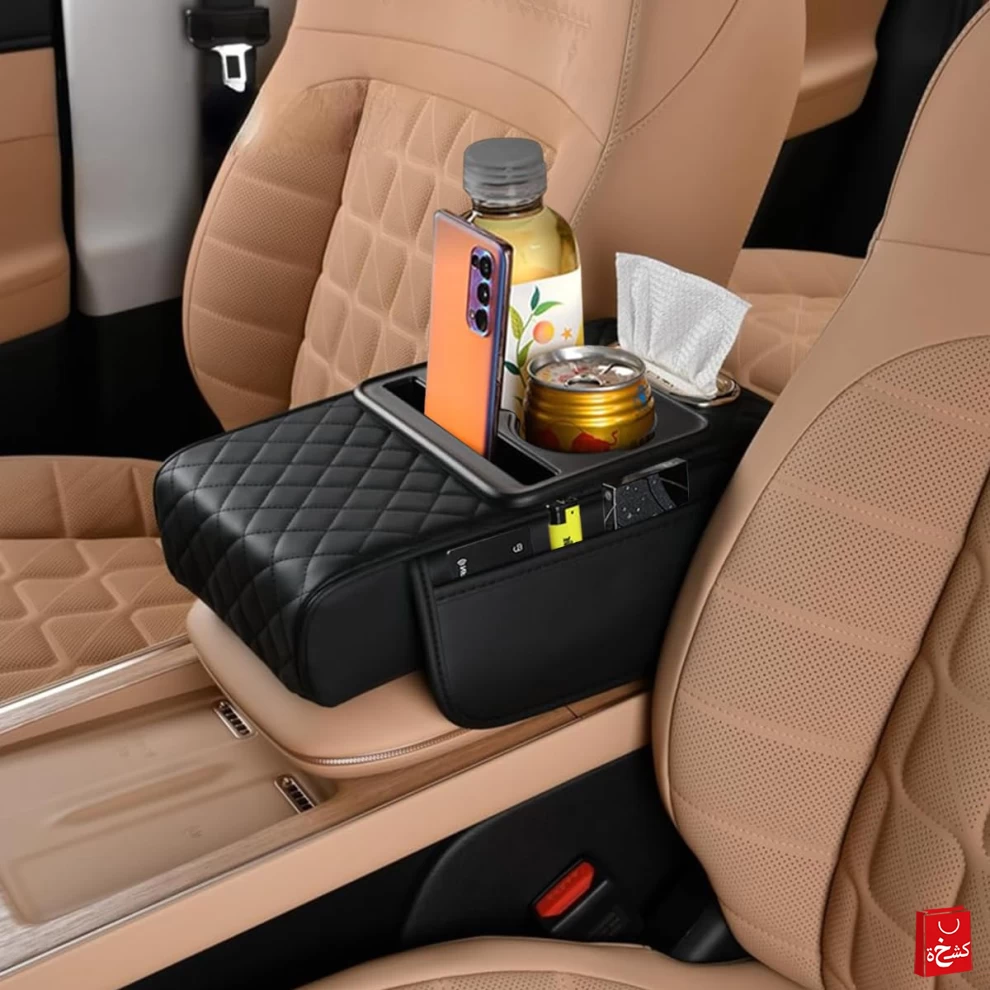 حسّن تجربة القيادة مع مسند الذراع متعدد الوظائف من الجلد الصناعي PU. مصمم للرحلات الطويلة لتوفير دعم مريح للذراع وتنظيم مستلزماتك داخل السيارة. يأتي مع حامل كوب، فتحة للهاتف، صندوق مناديل، وجيبين للتخزين، ويتميز بتصميم يناسب معظم السيارات.