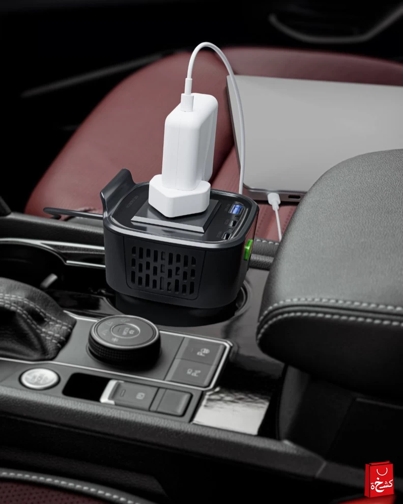 🔌🚗 محول طاقة للسيارة من Powerology بقدرة 150 واط – تصميم حامل الأكواب