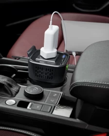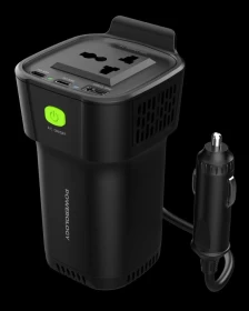 محول طاقة للسيارة من Powerology بقدرة 150 واط – تصميم حامل الأكواب