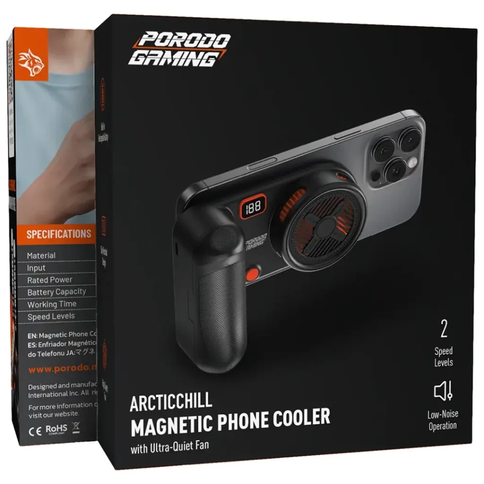 ❄️🎮 مبرد هاتف مغناطيسي للألعاب Porodo ArcticChill مع مروحة هادئة جدًا