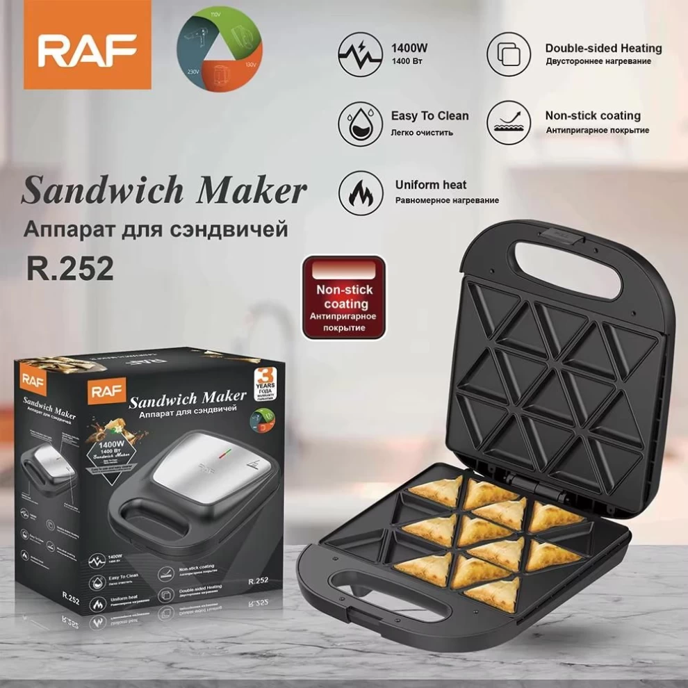 استمتع بتحضير سمبوسة ومقبلات منزلية مقرمشة في دقائق مع جهاز صنع السمبوسة الكهربائي RAF غير اللاصق بقوة 1400 واط. يتميز بـ 8 فتحات مثلثة لطبخ عدة قطع في نفس الوقت، وهو مثالي لـ المطابخ المنزلية والعائلات ومحبي الوجبات السريعة التحضير.