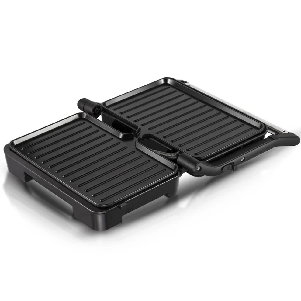 🥩 صفيحتان قابلتان للفتح 180° – سطح طهي مزدوج لطهي أسرع