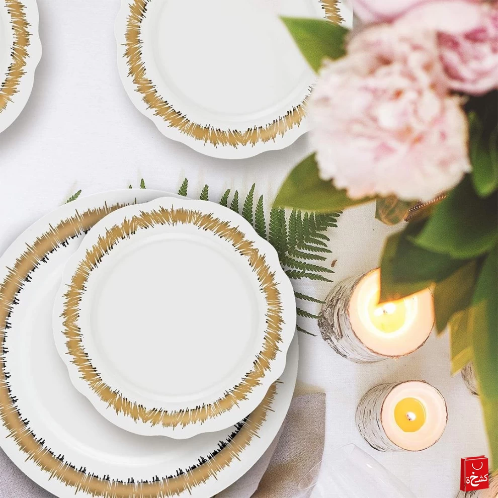• تصميم أبيض وذهبي أنيق – يضفي لمسة فاخرة على المائدة