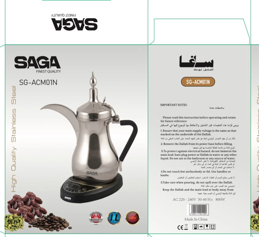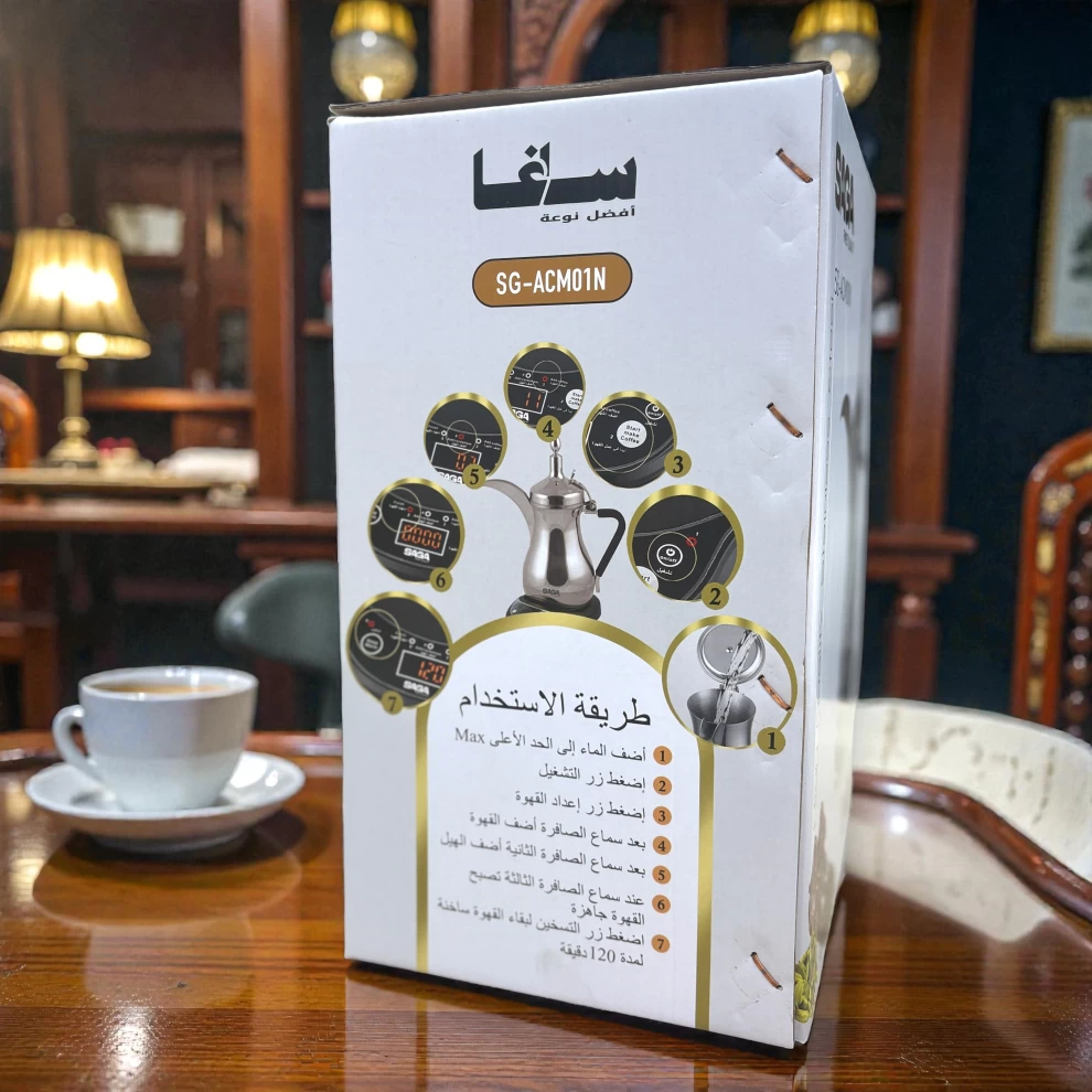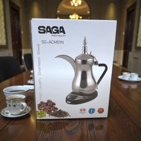 تجمع ماكينة SAGA SG-ACM01N بين التصميم الأنيق المصنوع من الستانلس ستيل عالي الجودة والتسخين السريع، لتكون مثالية للاستخدام اليومي في المنزل، الضيافة في المجلس، المكاتب، والمناسبات الخاصة.