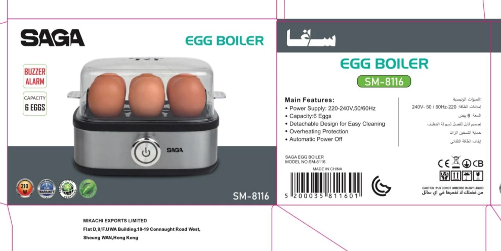 • 📦 1× جهاز سلق البيض SAGA SM-8116