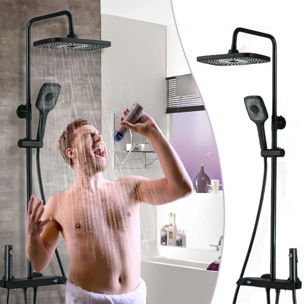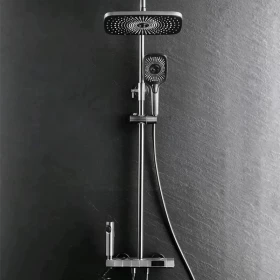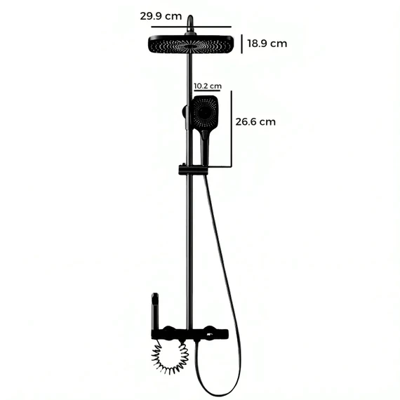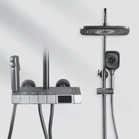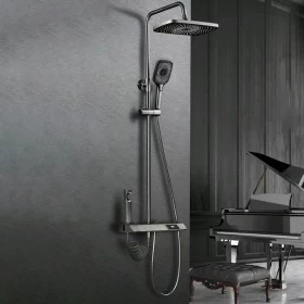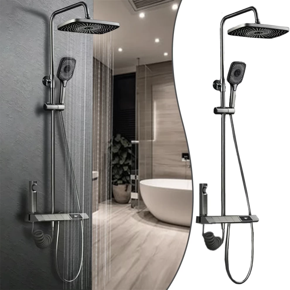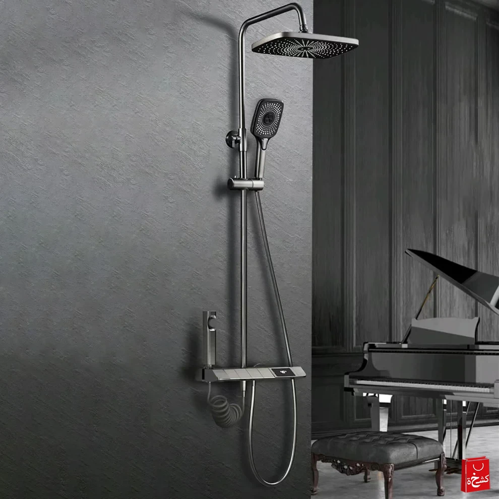 طقم دش جداري بـ 4 مقابض يمنحك تحكمًا دقيقًا في تدفق المياه ودرجة الحرارة، مع تصميم متين وأنيق يناسب الحمامات العصرية.