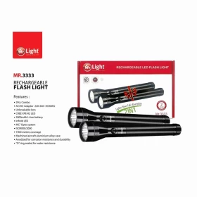 كن مستعدًا دائماً مع طقم كشافات Mr.Light MR.3333 القابلة للشحن (قطعتان) المصممة لتوفير إضاءة قوية وموثوقة في مختلف الظروف.