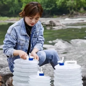 يعد خزان الماء القابل للطي بسعة 5 لتر حلاً عمليًا لتخزين وتوزيع المياه أثناء التخييم والرحلات والأنشطة الخارجية أو للاستخدام في حالات الطوارئ. يتميز بتصميم مرن يمكن طيه بسهولة عند عدم الاستخدام، مما يوفر مساحة كبيرة في حقيبة الرحلات.