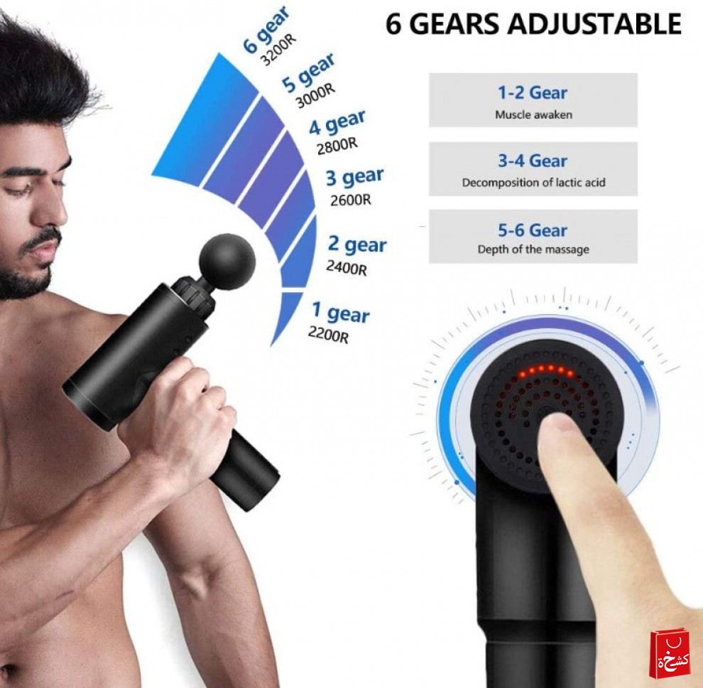 Enjoy a professional massage experience at home, the gym, or the office. This powerful handheld massage gun is designed to relieve muscle soreness, reduce tension, and speed up recovery. With 6 adjustable speed levels, you can customize your massage for warm-up, relaxation, or deep tissue relief.