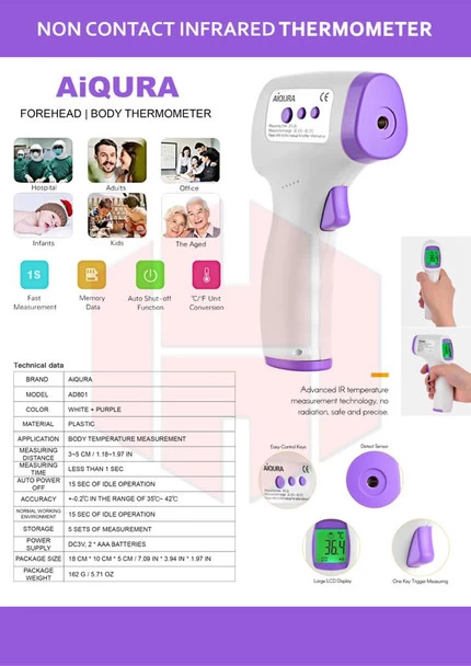 • 2-in-1 Mode: The digital infrared thermometer is specially designed for babies, adults and the elderly. In addition to monitoring body temperature, it is also capable of