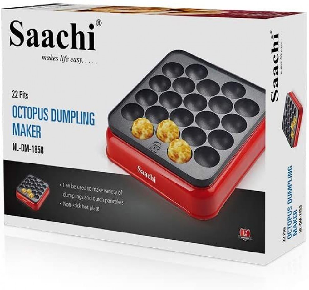 The Saachi nonstick octopus dumpling maker provides a fast and efficient way to prepare small meals. Use this dumpling maker to hygienically cook your own meals. This red colored dumpling maker is ideal for preparing octopus dumplings, meatballs, dutch pancakes, and such other dishes. Decide upon a sweet or savory filling and place the mix into the mold to cook dumplings, it's that simple! you can easily set this dumpling maker on your kitchen platform or table, and then store it after use.
