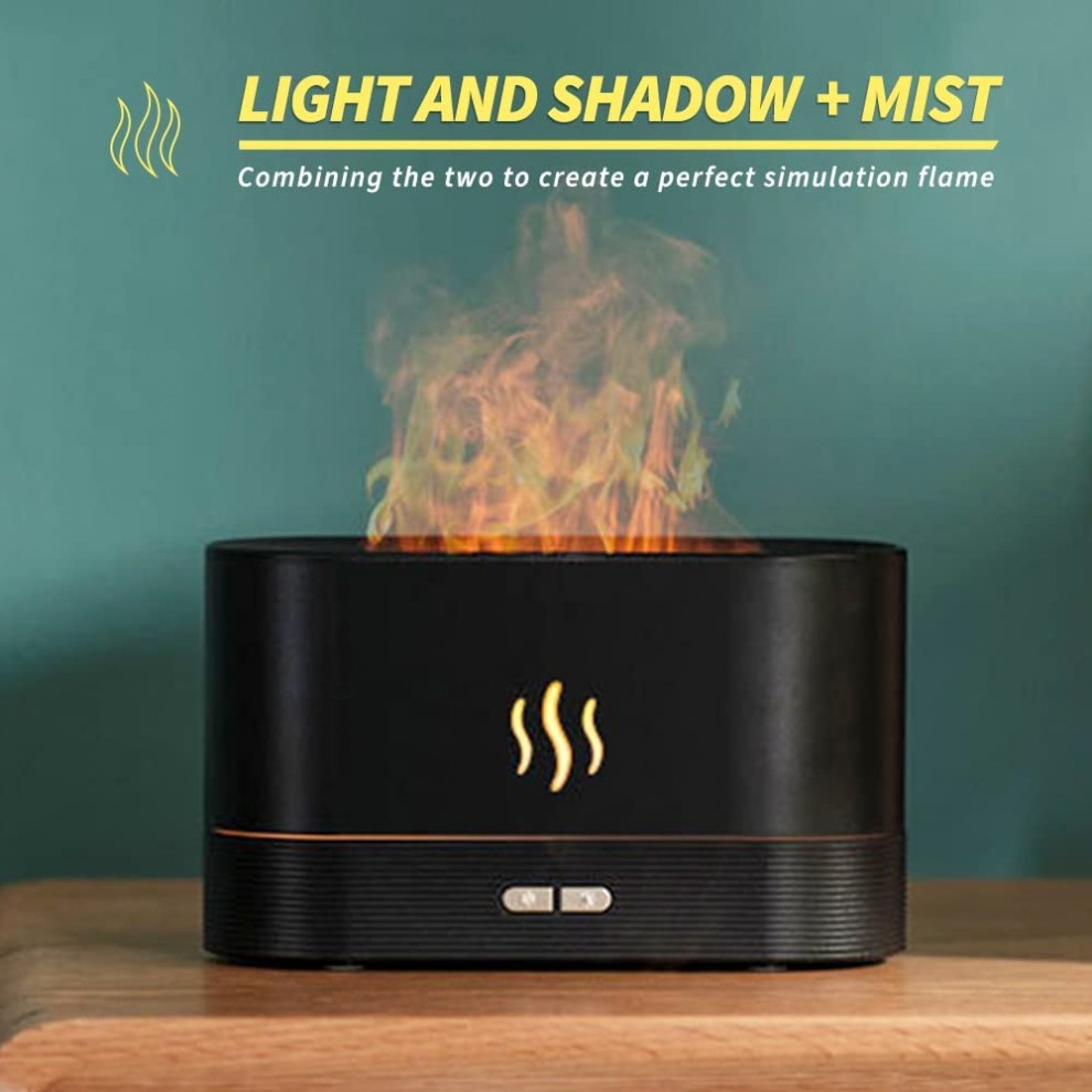 180ml Air Humidifier Essential Oil Diffuser Lamp With Simulated Flame Light Effect