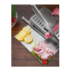 Slice frozen meat and vegetables easily with this Manual Frozen Meat and Vegetable Slicing Machine. Designed for precision and durability, it allows you to cut uniform slices safely without electricity—ideal for home kitchens, butcher shops, and small food businesses.