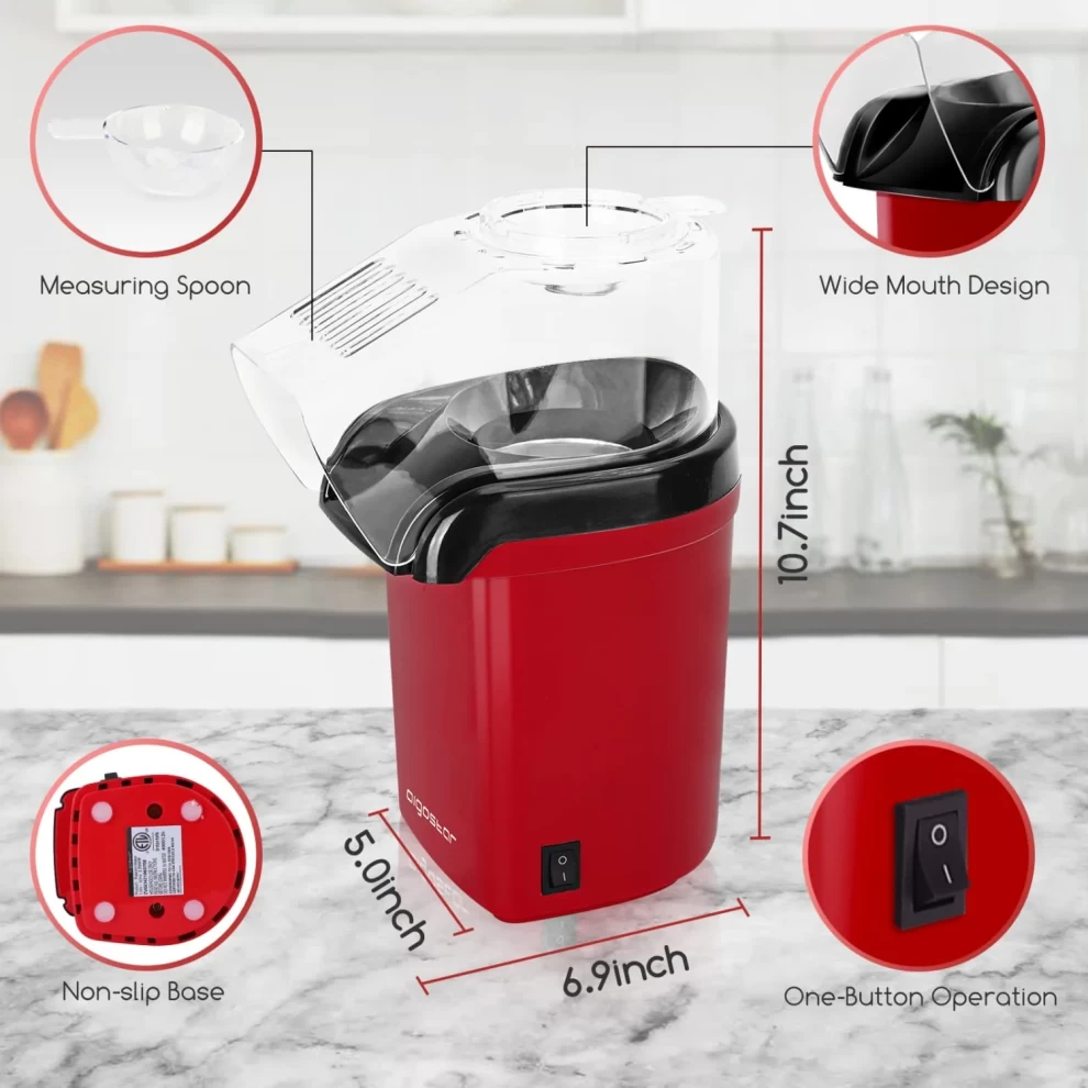 • 🌬️ Hot Air Technology – Pops popcorn without oil or butter