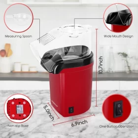 Enjoy healthy, oil-free popcorn in minutes with this compact hot air popper. Perfect for movie nights, parties, or anytime snacks!
