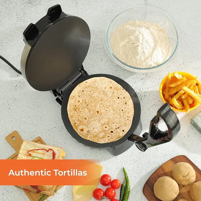 Make perfectly round and soft chapatis in minutes with the Chapati Roti Maker, a convenient kitchen appliance designed for quick and effortless flatbread preparation. With its non-stick heating plates and even heat distribution, this electric roti maker helps you prepare chapati, roti, tortillas, and flatbreads with ease.
