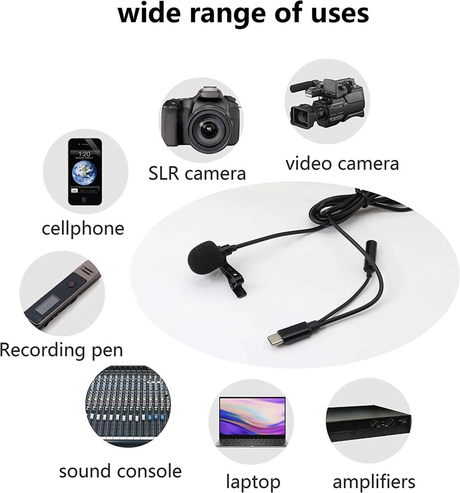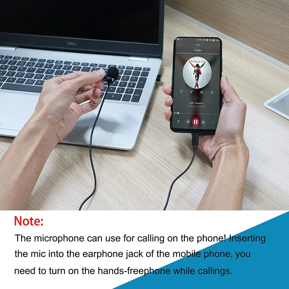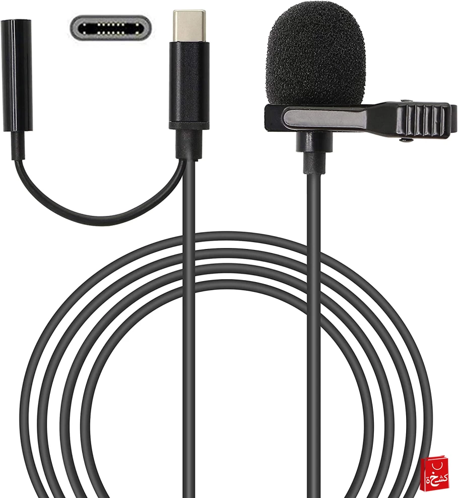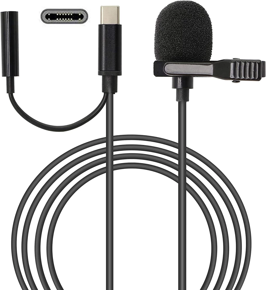 USB C Microphone With Clip & 3.5mm Port - Black, Superb Sound for Audio and Video Recording